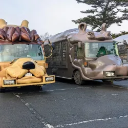 Fuji Safari Park is a drive-through zoo where visitors can see a variety of animals in naturalistic habitats. It is one of Japan's largest safari parks and offers interactive experiences such as feeding animals.