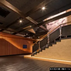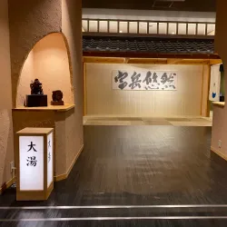 The onsen features various types of baths and amenities, providing a traditional Japanese bathing experience.