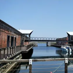 A historic red brick warehouse complex converted into a shopping and dining area, offering a variety of local crafts, souvenirs, and restaurants.