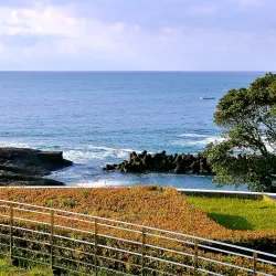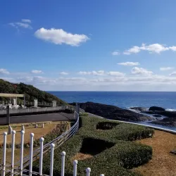 Hyuga Cape is a scenic promontory offering stunning views of the Pacific Ocean. It is a popular spot for sightseeing, photography, and enjoying the natural coastal landscape. The area is known for its rugged cliffs and clear blue waters, making it a favorite for nature lovers.