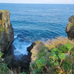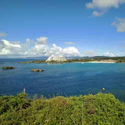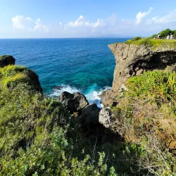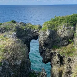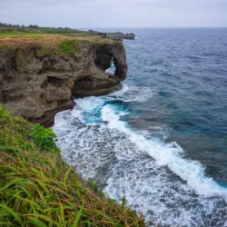 Cape Manzamo is a scenic cliff on the western coast of Okinawa Island, known for its elephant trunk-shaped rock formation and stunning ocean views.