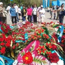 A somber site commemorating the victims of nuclear tests conducted at the nearby Semipalatinsk Test Site during the Soviet era.