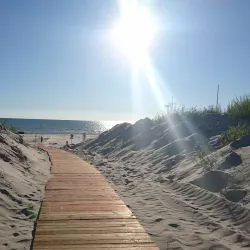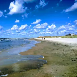 Liepaja Beach is a long, sandy beach along the Baltic Sea, popular for swimming, sunbathing, and beach sports. It is one of the cleanest and most beautiful beaches in Latvia, attracting both locals and tourists during the summer months.