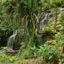 The waterfall is accessible by a short hike and offers a refreshing escape into nature.