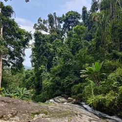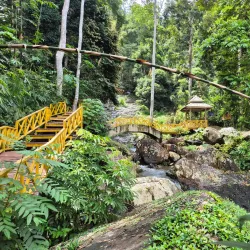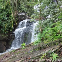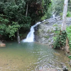 A scenic waterfall located within a forested area, Durian Perangin Waterfall is a popular spot for picnics and swimming in natural pools.
