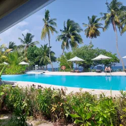 The beach offers a peaceful environment away from the more crowded tourist spots, making it perfect for relaxation and enjoying the natural beauty of the Maldives.