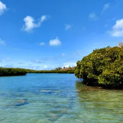 Pointe d'Esny Beach is a tranquil beach known for its clear waters and coral reefs. It is less frequented by tourists, making it a perfect spot for peaceful walks, bird watching, and enjoying the natural surroundings.