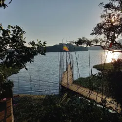 A scenic lagoon surrounded by lush vegetation, perfect for bird watching and relaxing boat rides.