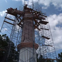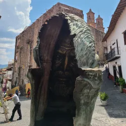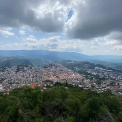 A large statue of Christ located on a hill overlooking Taxco. Visitors can hike or drive up to the monument, which offers stunning views of the town and surrounding valleys.