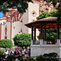 The central square of Taxco, surrounded by historic buildings, shops, and cafes. It is a lively gathering place for locals and tourists alike, often hosting cultural events and festivals.