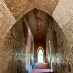 Sulamani Temple is known for its beautiful brickwork and detailed frescoes inside. Built in 1183 AD, it is a fine example of Bagan's temple architecture and artistry.