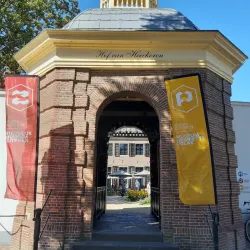 A historic courtyard and garden area that offers a tranquil setting in the heart of Zutphen. It is surrounded by old buildings and provides a glimpse into the city's residential past.