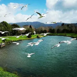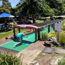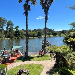 Waimarino Adventure Park is a family-friendly water park offering a variety of inflatable water obstacles and activities on a lake. It is popular for group outings, team-building events, and fun-filled days for all ages.