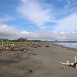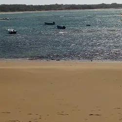 The beach is surrounded by lush vegetation and is ideal for relaxing walks and bird watching.