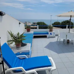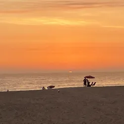 The beach is well-equipped with facilities and offers a relaxing atmosphere for sunbathing and beach sports.