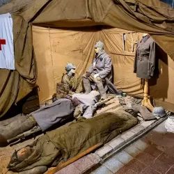 This memorial commemorates the soldiers who fought in the conflicts on the Karelian Isthmus during World War II.