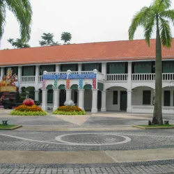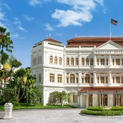 Raffles Hotel is a colonial-style luxury hotel famous for its historical significance and the invention of the Singapore Sling cocktail.