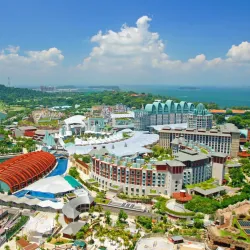 Sentosa Island is a popular resort destination featuring beaches, theme parks, and attractions such as Universal Studios Singapore and S.E.A. Aquarium.