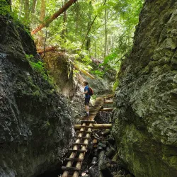 A historical site within Slovak Paradise National Park featuring ruins of a medieval monastery and beautiful natural surroundings, popular with hikers and history enthusiasts.