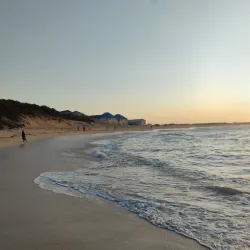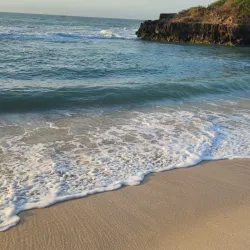 The beach is also a popular location for fishing and observing local marine life, offering a peaceful retreat for visitors.