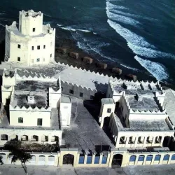 The lighthouse is a notable landmark guiding ships along the Somali coast.