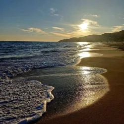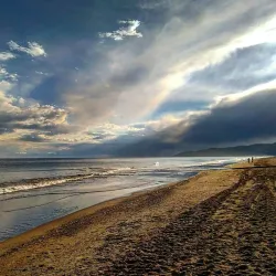 The beach is family-friendly and offers facilities such as showers, restrooms, and nearby cafes, making it a comfortable spot for a day by the sea.