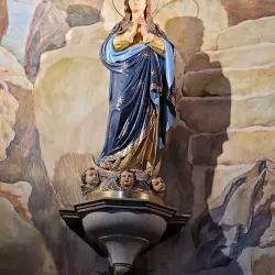 Visitors can admire the church's interior, including its altarpieces and stained glass windows, and attend local religious festivals held here.