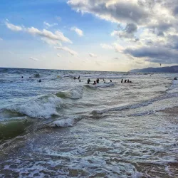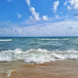 The beach is well-equipped with facilities including restaurants, bars, and lifeguard services, making it a safe and enjoyable spot for families and tourists alike.