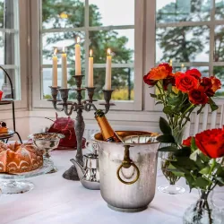 Högberga Gård is a historic manor house turned hotel and restaurant, offering stunning views over the Stockholm archipelago.