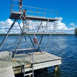 Långängen Beach is a popular swimming spot on Lidingö, known for its clean waters and sandy shore. It is a great place for families and visitors looking to relax by the sea during the summer months.