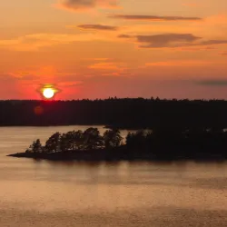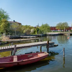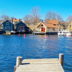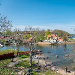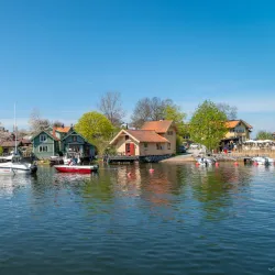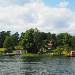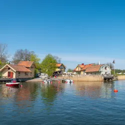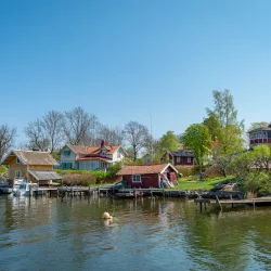 Rindö is an island near Vaxholm known for its scenic beauty, hiking trails, and historical military fortifications.