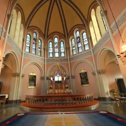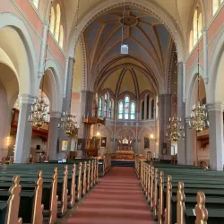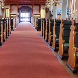 Visitors can admire the church's stained glass windows, wooden carvings, and peaceful ambiance.