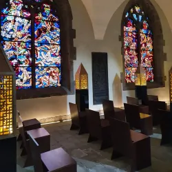 Visitors can admire the stained glass windows, intricate woodwork, and peaceful ambiance.