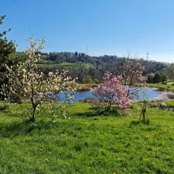 Lac d'Aubonne is a small lake near the town, providing a tranquil setting for picnics, bird watching, and light water activities.