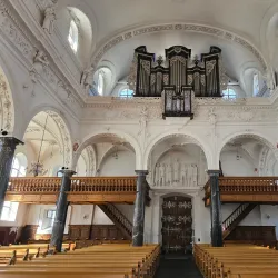 A historic church in Stans known for its beautiful architecture and interior artwork.