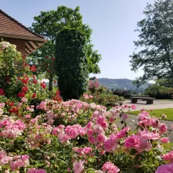 A lovely rose garden featuring a wide variety of rose species, this garden is a peaceful spot for relaxation and enjoying nature's beauty, especially during the blooming season.