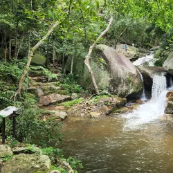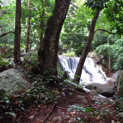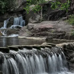 A beautiful waterfall located within a forested area, perfect for a refreshing swim and picnic. The waterfall is surrounded by lush greenery and offers a tranquil escape from the city.