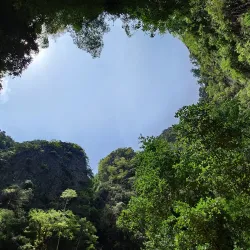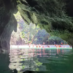 Emerald Cave is a stunning sea cave located on Koh Mook island. It is famous for its emerald-green water and the dramatic entrance that can only be accessed by swimming through a dark tunnel. Inside, visitors find a hidden lagoon surrounded by towering cliffs and lush vegetation.