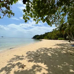 The island offers a laid-back atmosphere with several resorts and restaurants catering to tourists seeking a peaceful getaway.