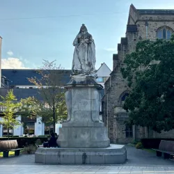 The statue is located in a central area, making it easily accessible for visitors exploring the town center.