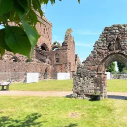 Sweetheart Abbey is a Cistercian monastery located near Dumfries, known for its romantic history and beautiful ruins. It is named after Lady Dervorgilla, who kept her husband's embalmed heart in a casket, inspiring the abbey's name.