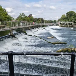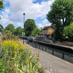 The area is popular for watching boats navigate the lock and for enjoying riverside walks.