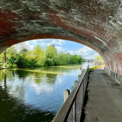The path connects several parks and landmarks, providing a peaceful escape within the town.