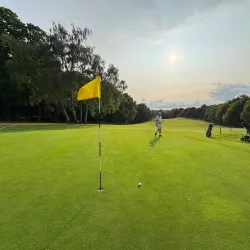 A scenic golf course offering a challenging game for golf enthusiasts amidst beautiful countryside surroundings.