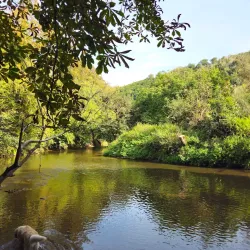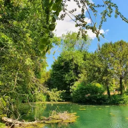 Silent Pool is a spring-fed lake located near Guildford, surrounded by woodland and steeped in local legend. It is known for its clear blue waters and tranquil setting.