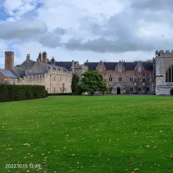 The gardens are a peaceful retreat with ancient trees, a deer park, and stunning views of the cathedral, making it a perfect spot for relaxation and photography.