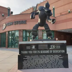 The Honda Center is a premier indoor arena hosting NHL games for the Anaheim Ducks, concerts, and various entertainment events. It is a key venue for sports and live performances in the city.