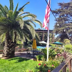 It features several seafood restaurants, shops, and boat rental services, offering a lively waterfront experience.
