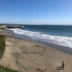 The beach offers panoramic views of the ocean and the historic Santa Cruz Surfing Museum located nearby in the Mark Abbott Memorial Lighthouse.