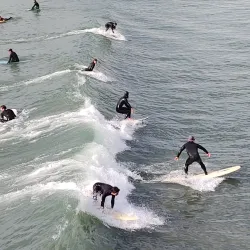 Seal Beach is known for its consistent surf breaks, attracting surfers from around the region. The beach offers waves suitable for both beginners and experienced surfers.